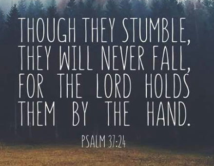 though they stumble God holds their hand Psalm