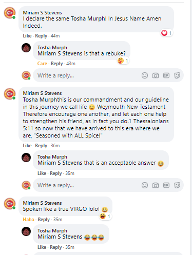 And by the way if you needed to know the person I referenced above see her below Facebook comment: (smile)