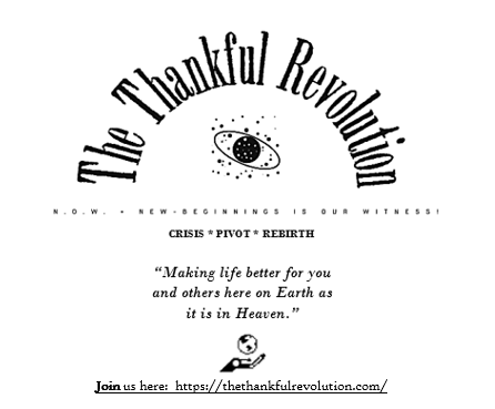 Miriam Smith Stevens, December 5, 20211 Updating The Thankful Revolution logo is part of the New-Beginnings is OUR Witness! Please Subscribe, Like, Share, Comment, and Bookmark. And always spread the “Good News” that in all things we can give thanks regardless.! Peace and Blessings ~ Miriam Second option for logo, I think I may like this one better. Any thoughts? A blast from our past with a few upgradesThe evolution of The Thankful Revolution Logo… logo creation as of 12.19.21
